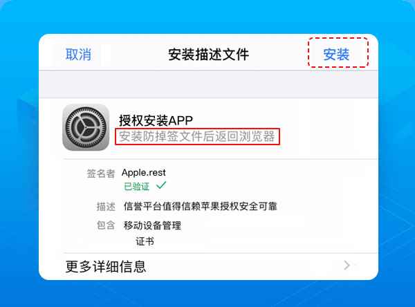 The description file is certified by Apple and is used to record the user's device. Please feel free to